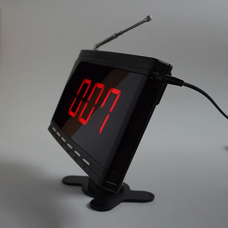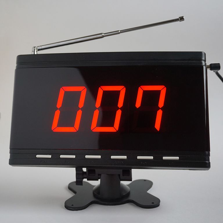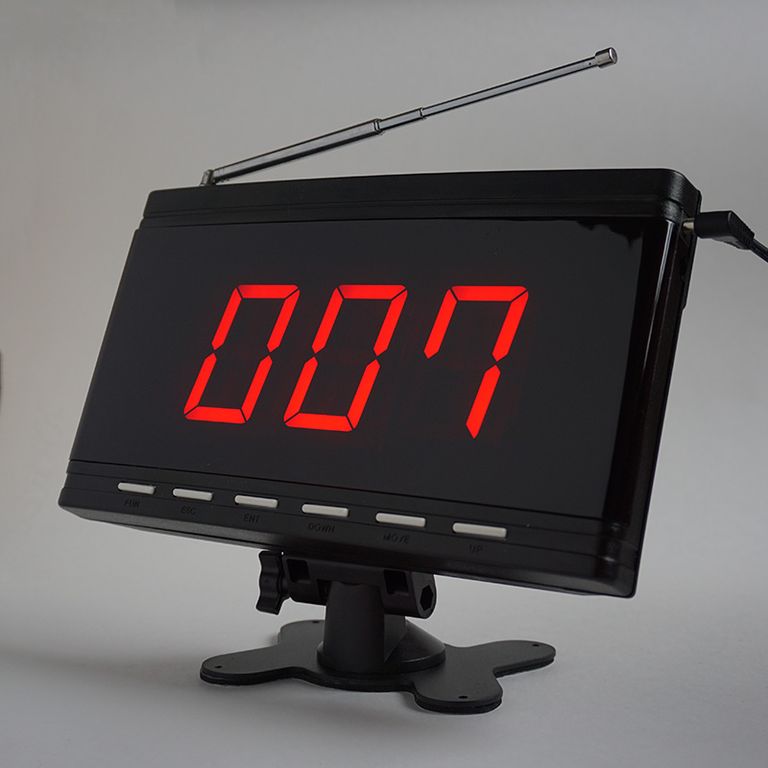 Дисплей-Приемник используется для отображения вызовов от беспроводных кнопок. Беспроводные кнопки вызова размещаются в доступных для клиентах местах. Благодаря беспроводной системе вызова персонала клиенты будут получать обслуживание более высокого уровня, а обслуживающий персонал будет всегда знать какому именно клиенту и где требуются его услуги.